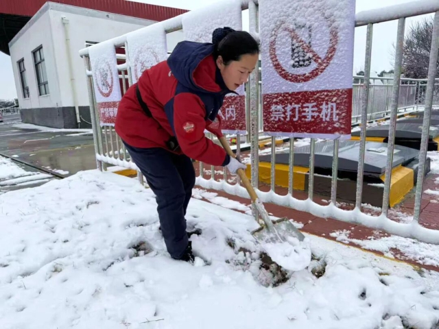石化公司鳳臺站員工清理站內(nèi)積雪