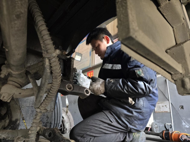 交運集團廬江公交工作人員正在對車輛核心安全部件進行檢查