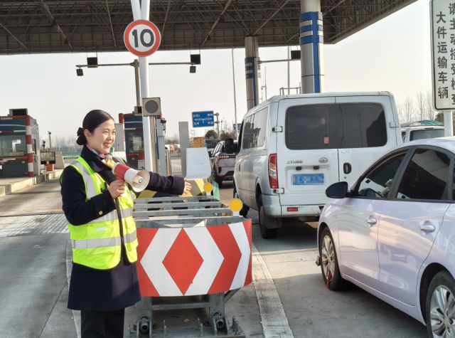 蚌埠中心金山湖站收費(fèi)員疏導(dǎo)廣場(chǎng)車輛