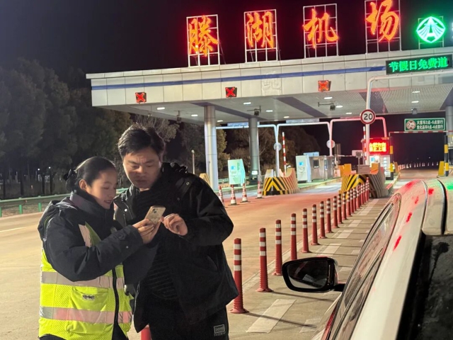 宿州中心滕湖機(jī)場(chǎng)站收費(fèi)員幫助司乘人員規(guī)劃路線