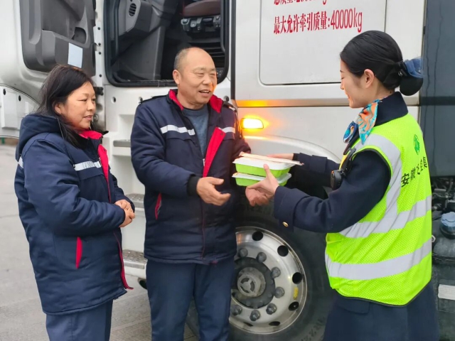 蕪湖中心灣沚站工作人員給過(guò)往司乘送上新年禮物